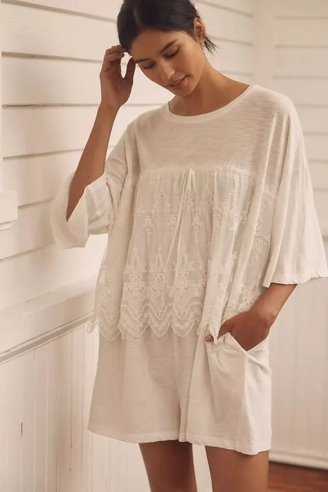 A new sleepwear and intimates line for Anthropologie launched in July 2025. Flirty and feminine shapes with unique details that can be worn beyond the bedroom.